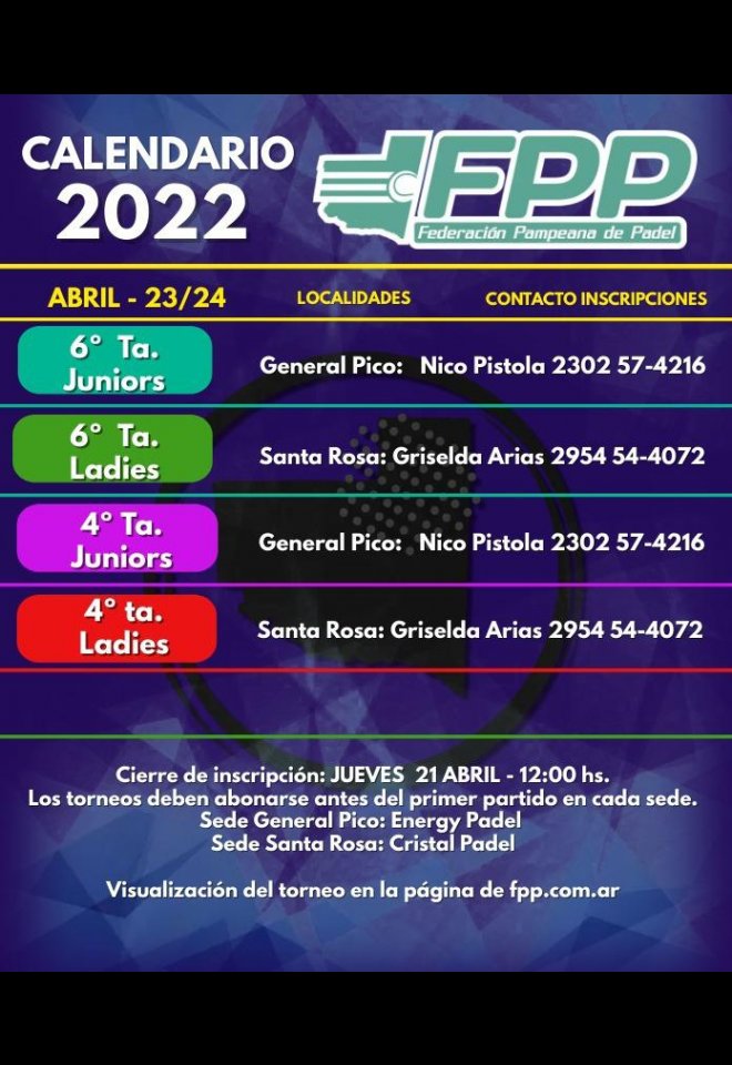 »» Evento: FPP - Etapa 1 Juniors y Ladies »» Localidad: General Pico | Santa Rosa »» Fechas: 23/04/2022 al 24/04/2022