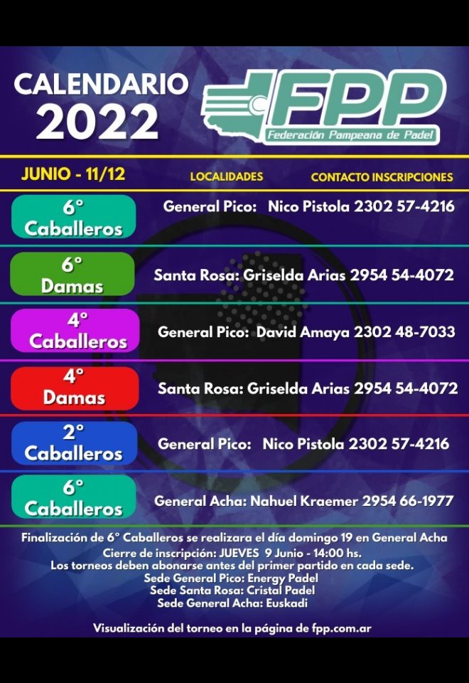 »» Evento: 2da Etapa Pares »» Localidad: General Acha | General Pico | Santa Rosa »» Fechas: 11/06/2022 al 12/06/2022