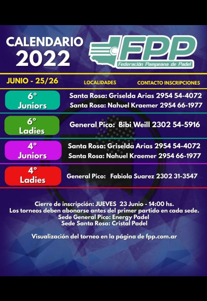 »» Evento: 2da Etapa: Juniors y Ladies »» Localidad: General Pico | Santa Rosa »» Fechas: 25/06/2022 al 26/06/2022