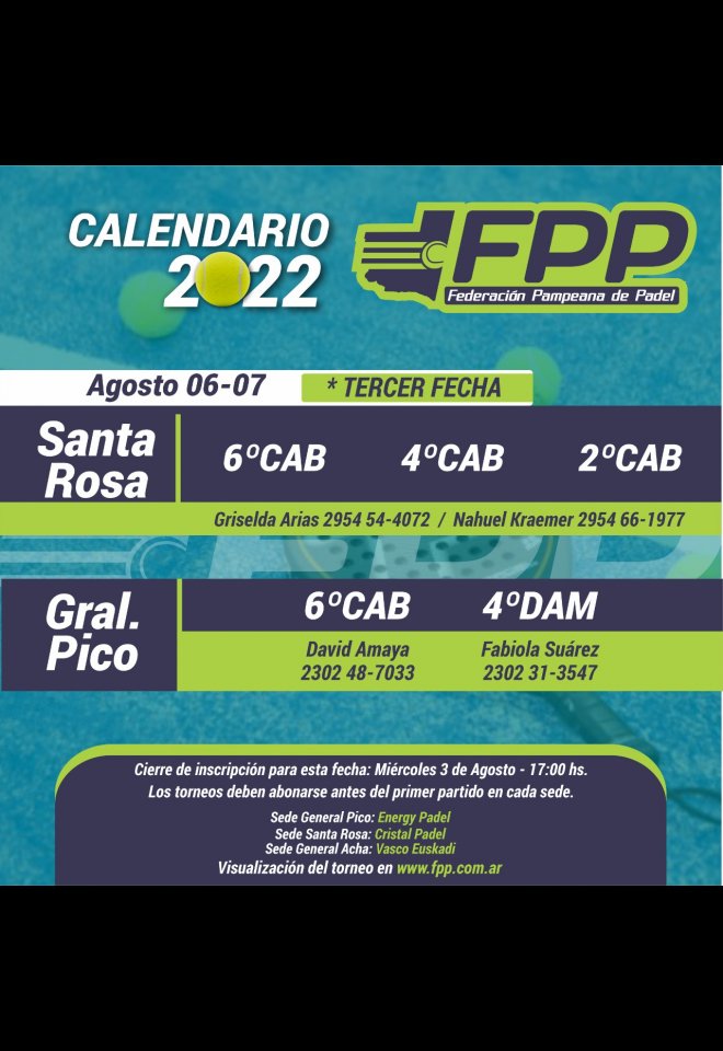 »» Evento: 3RA ETAPA CATEGORIAS PARES DE LIBRE »» Localidad: General Pico | Santa Rosa »» Fechas: 06/08/2022 al 07/08/2022