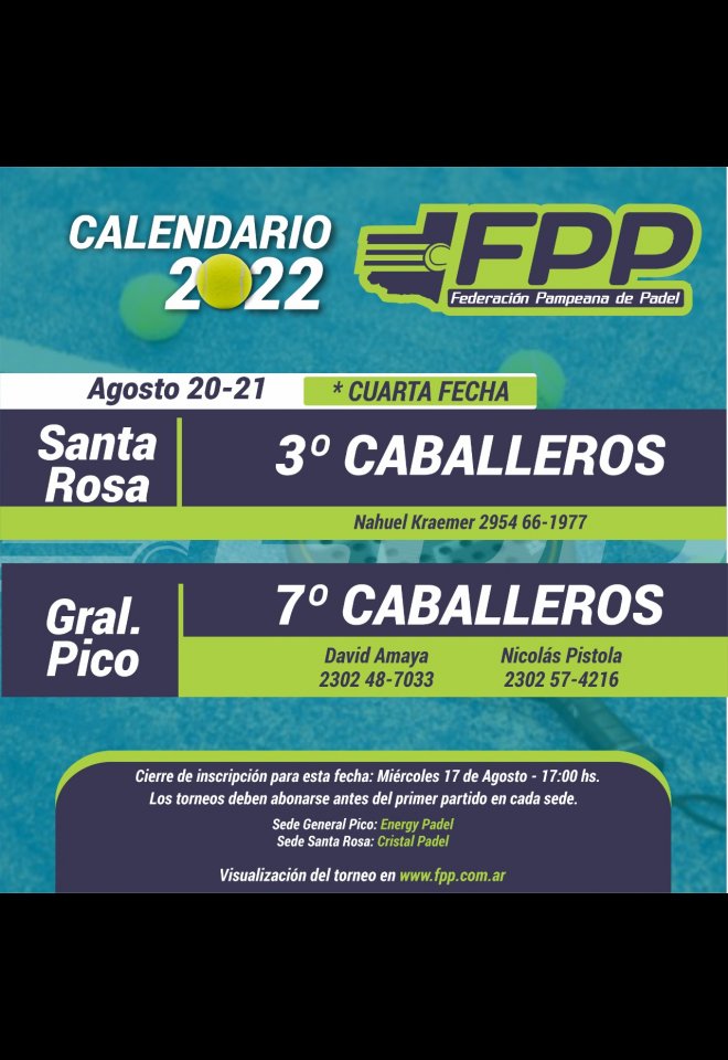 »» Evento: 4ta Etapa categorias Impares »» Localidad: General Pico | Santa Rosa »» Fechas: 20/08/2022 al 21/08/2022