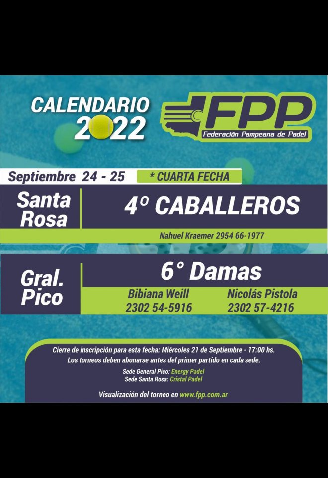 »» Evento: 4ta ETAPA PARES LIBRES, 6TA DAMAS - 4TA CABALLEROS »» Localidad: General Pico | Santa Rosa »» Fechas: 24/09/2022 al 25/09/2022